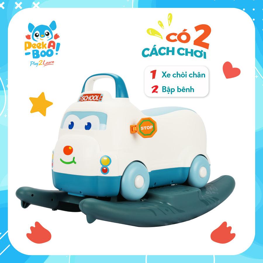 Điểm nổi bật của mẫu xe này chính là khả năng biến hóa 2 trong 1: vừa làm xe chòi chân vừa là bập bênh vui nhộn. Khi sử dụng ở chế độ chòi chân, bé có thể dễ dàng đẩy xe về phía trước bằng cách dùng lực từ đôi chân, qua đó rèn luyện sức mạnh của các cơ chân, hỗ trợ phát triển thể chất một cách tự nhiên. Chuyển sang chế độ bập bênh, sản phẩm sẽ trở thành một chiếc ghế đu đưa nhẹ nhàng, mang đến cảm giác thư giãn, giúp bé học cách giữ thăng bằng và cảm nhận sự ổn định khi di chuyển.